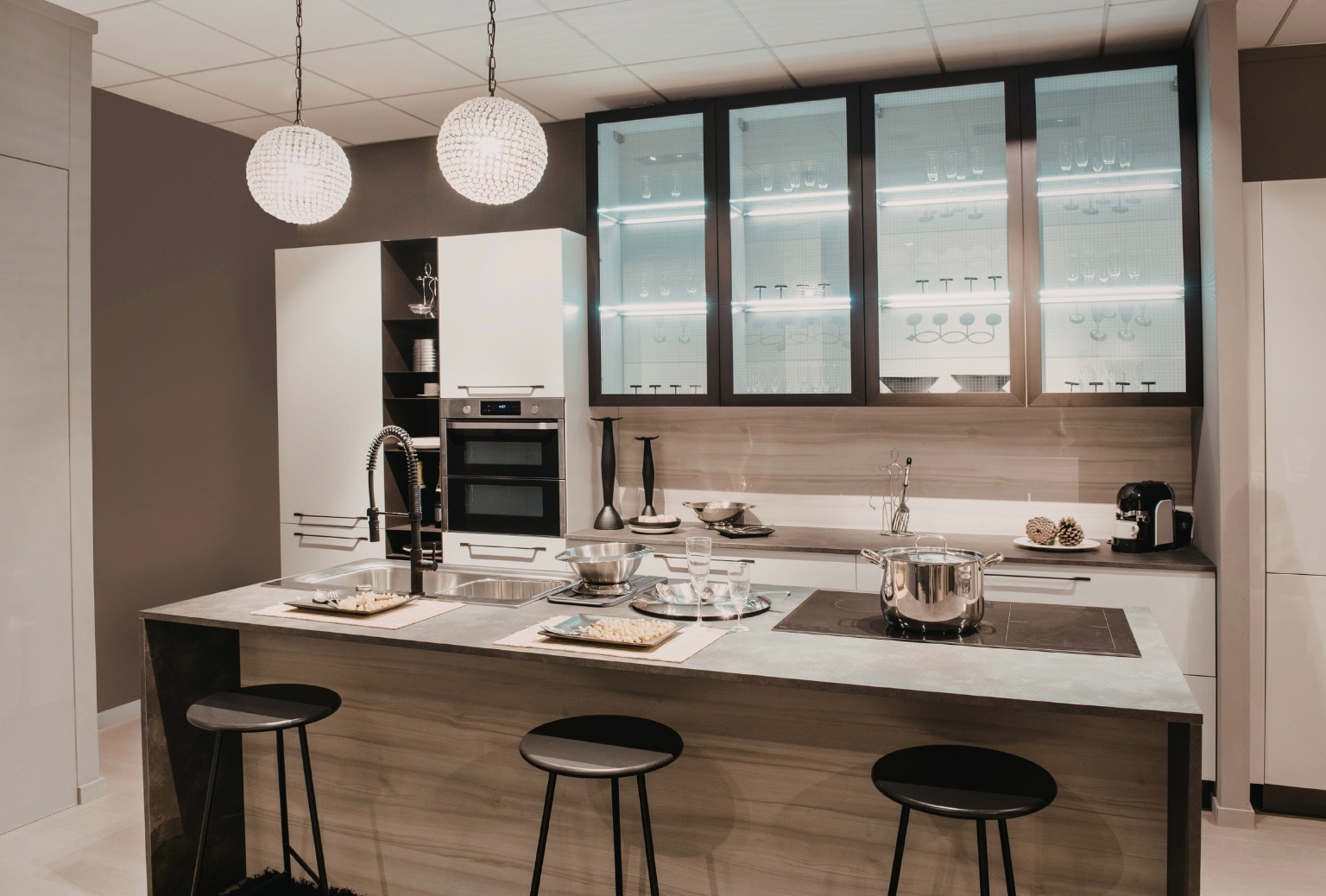 Eclectic Contemporary: Clustered pendants or statement shapes
